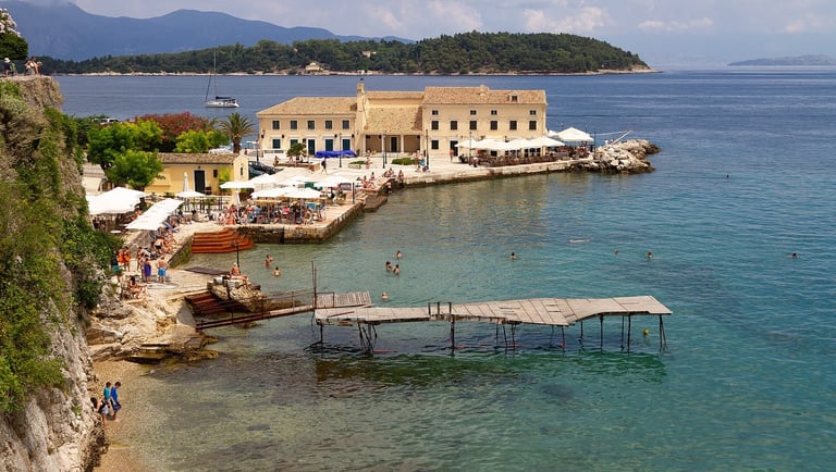 Head to Liston, to enjoy a cup of coffee and fresh orange juice in one of the cafes. It is a convenient meeting point and a welcome break between the headiness of the old town and the vast expanse of Spianada ("Esplanade") square culminating in the imposing Old Fort. Liston was built during French rule in the beginning of the 19th century, to imitate rue de Rivoli and is also reminiscent of St Marks Square and its arched colonnades.