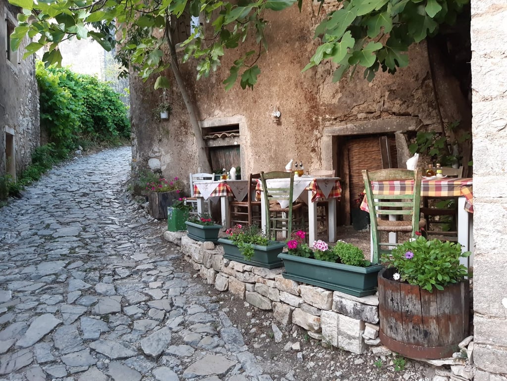 Old Perithia is an enchanting village high up in the mountains. It was built in the 14th century by Byzantines who, seeking a refuge from pirates, fled their fishing villages by the sea and found a perfect discreet hideaway. In the 20th century, with the development of sea/beach tourism, the trend was reversed and the village was left abandoned. At its height there were 130 houses, built in Venetian style surrounded by 8 churches.